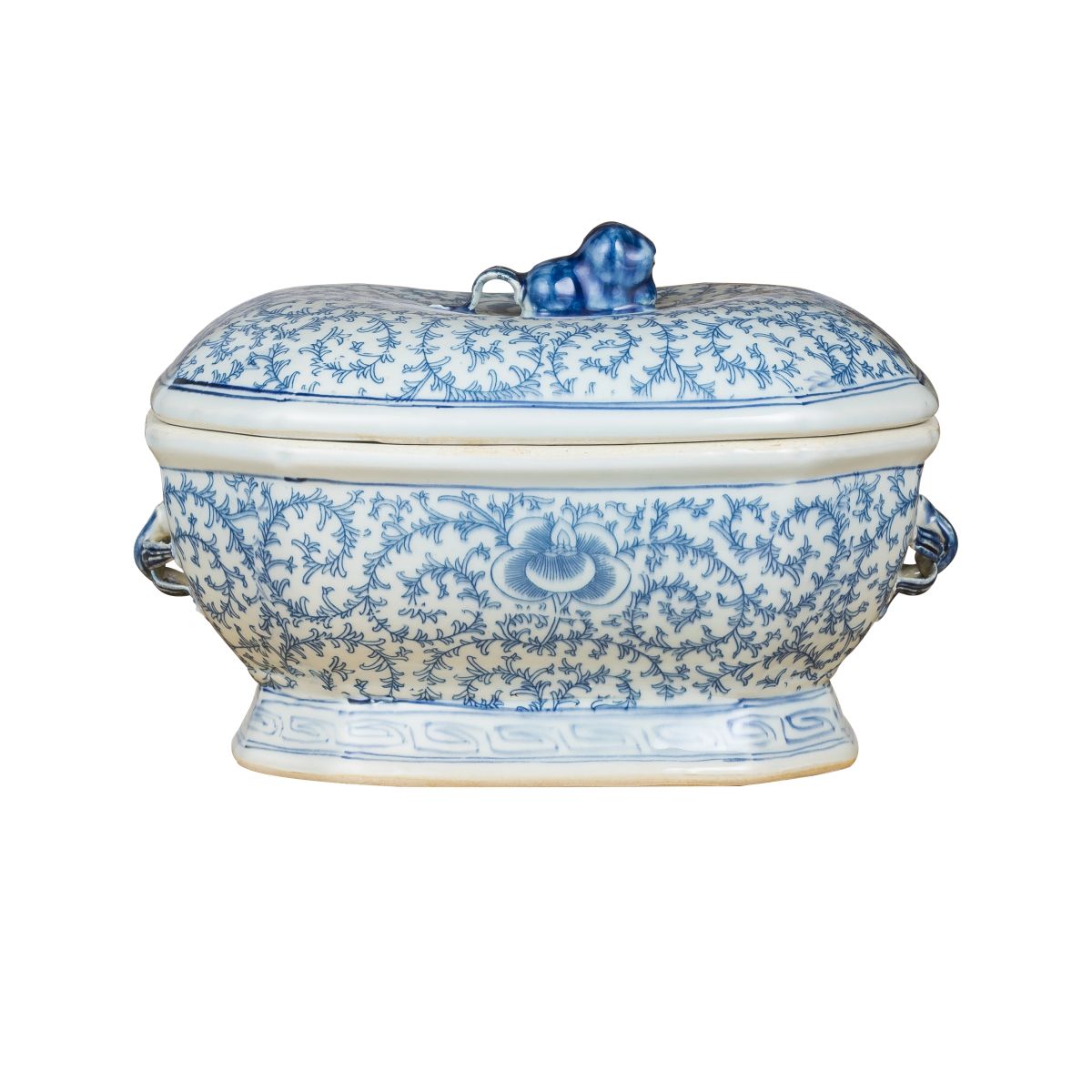 Blue and White Oval Fruit Jar Floral Motif With Squirrel Lid