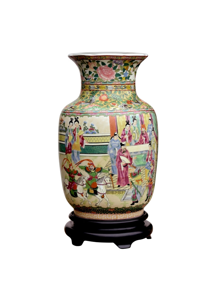 Beautiful Chinese Rose Canton Porcelain Vase with Stand 14"
