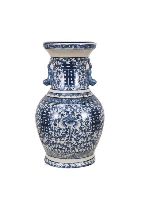Beautiful Oriental Blue and White Double Happiness Porcelain Vase 14"
