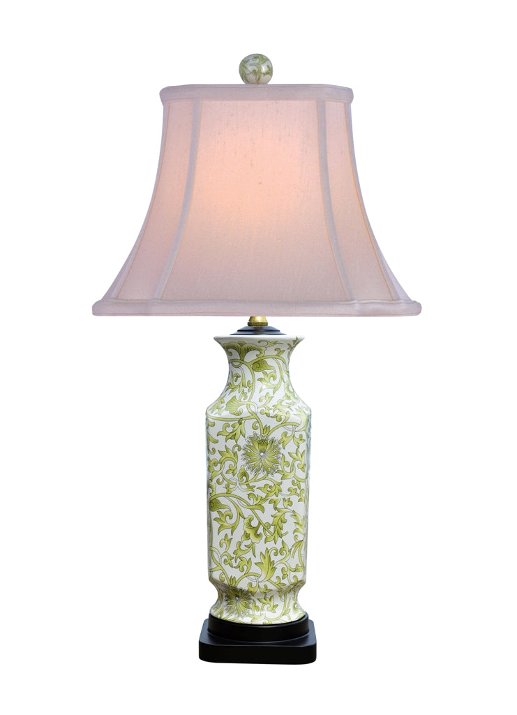 Beautiful White and Green Tapestry Vase Porcelain Table Lamp 24"
