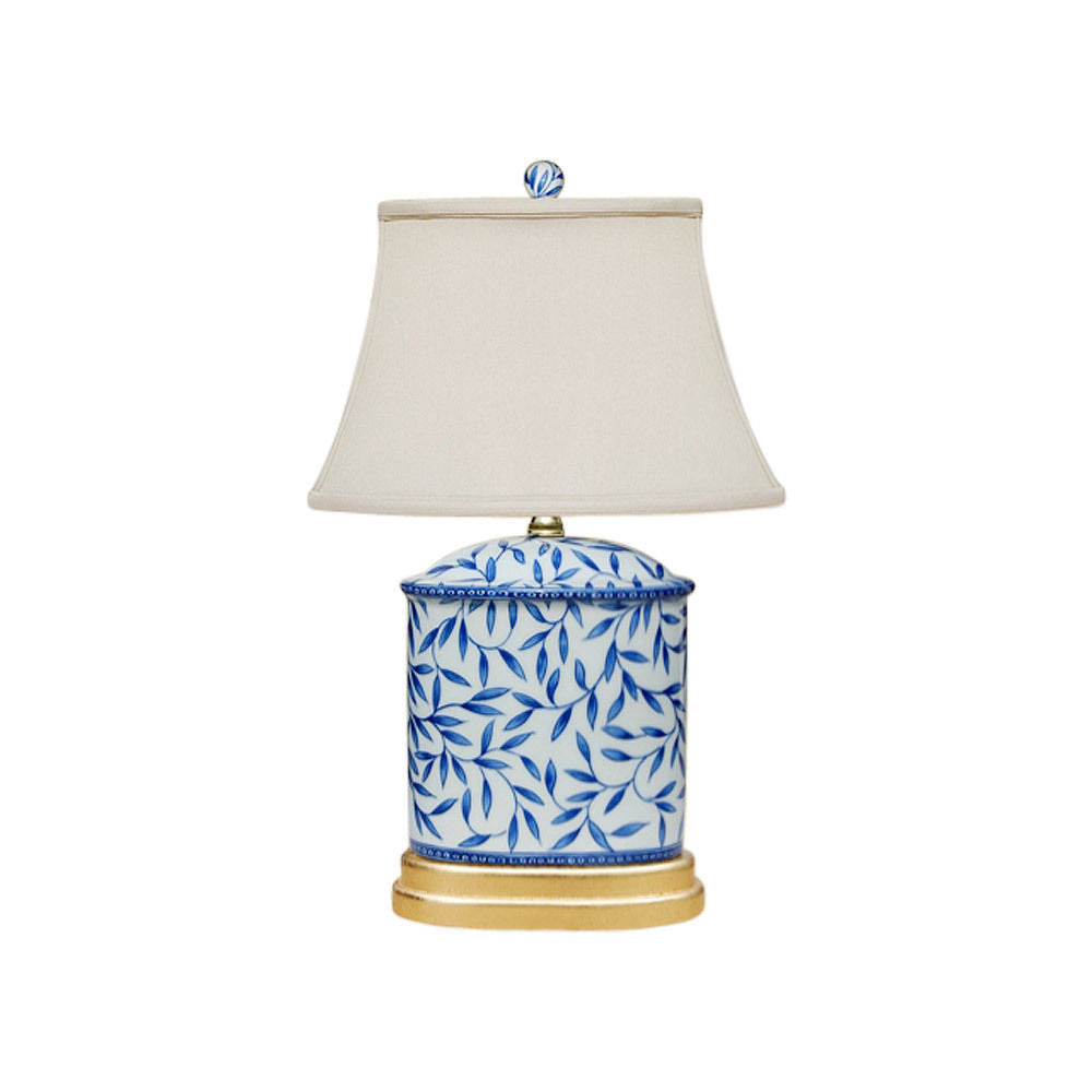Blue and White Bamboo Floral Porcelain Oval Vase Table Lamp 19.5"