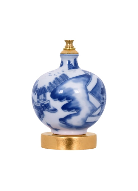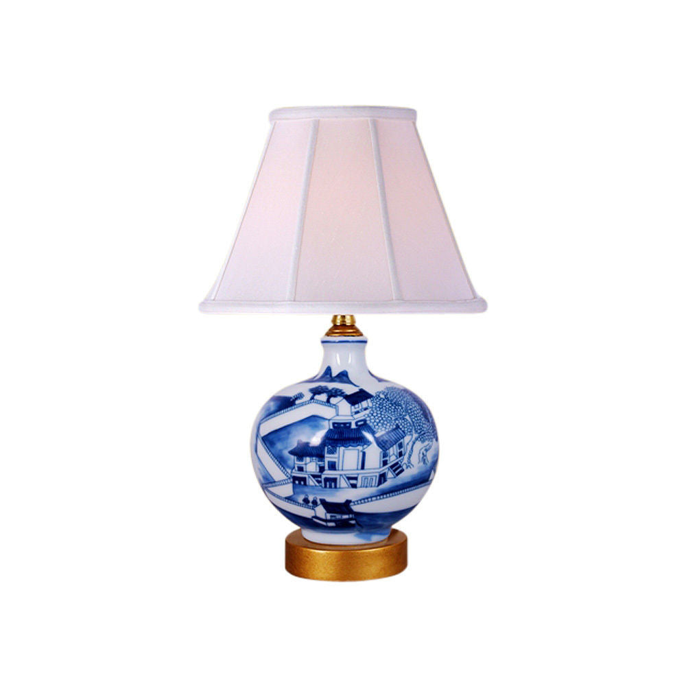 Blue and White Blue Willow Chinese Porcelain Gourd Vase Table Lamp 14"