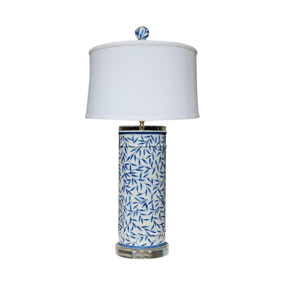 Blue and White Cylindrical Floral Leaf Porcelain Vase Table Lamp 29"