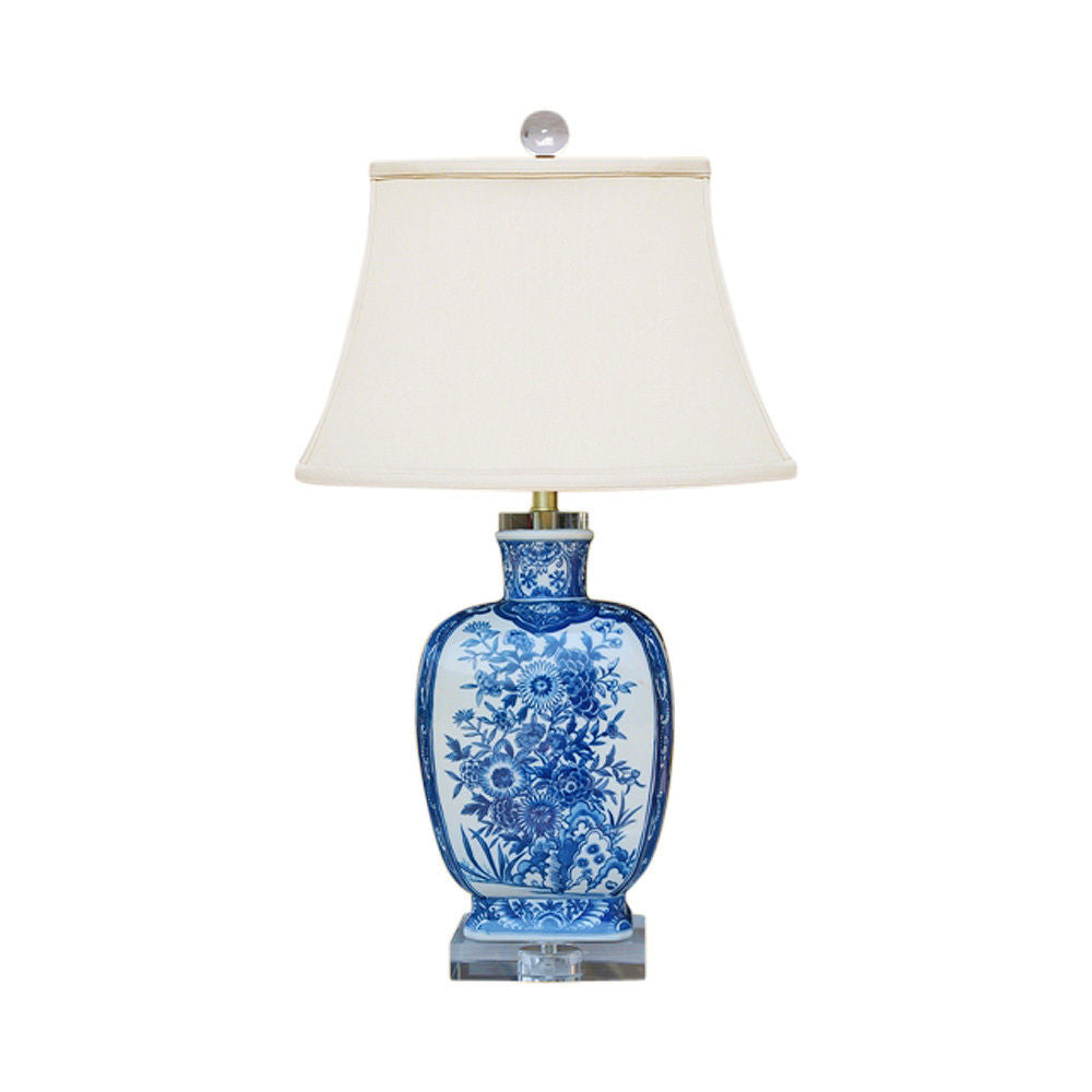 Blue and White Floral Motif Chinese Porcelain Vase Table Lamp 24"