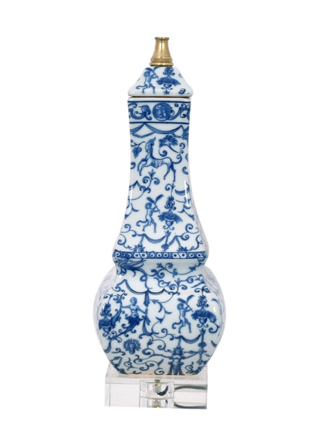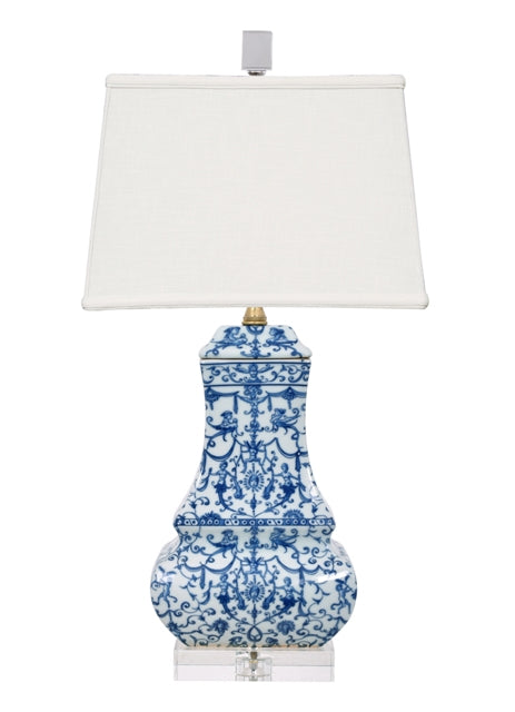 Blue and White Floral Porcelain Chinese Vase Clear Base Table Lamp 24"