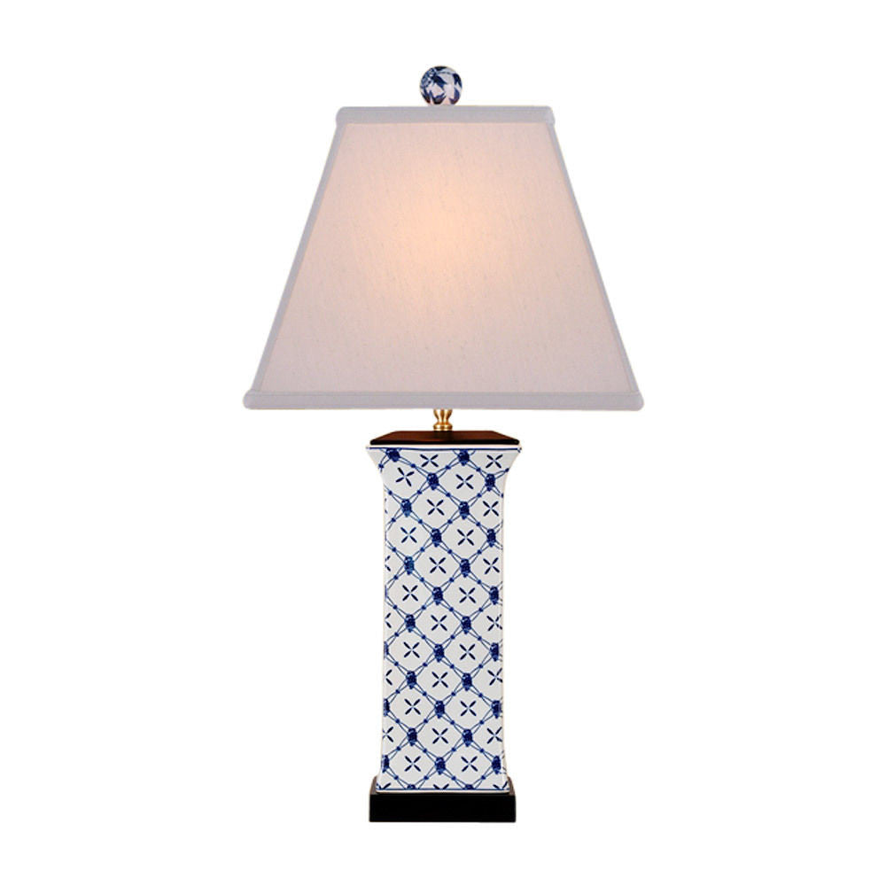 Blue and White Geometric Square Porcelain Vase Table Lamp 28"
