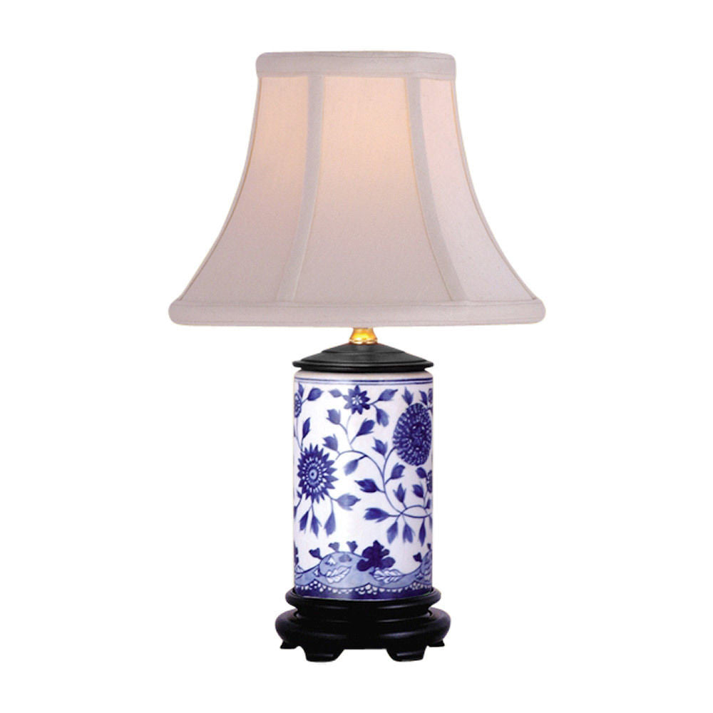 Blue and White Motif Cylindrical Porcelain Vase Table Lamp 15"