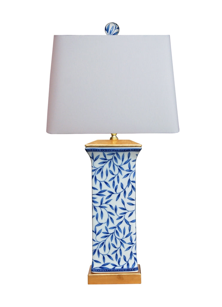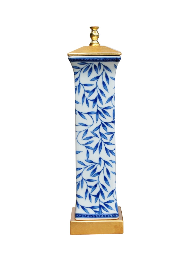 Blue and White Square Floral Leaf Porcelain Vase Table Lamp 28"