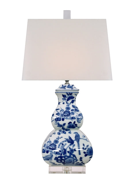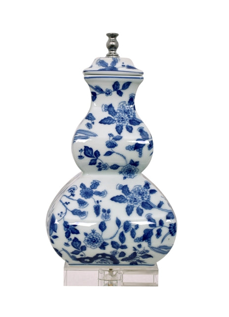 B/W PORCELAIN SQUARE GOURD LAMP W/CRYSTAL BASE