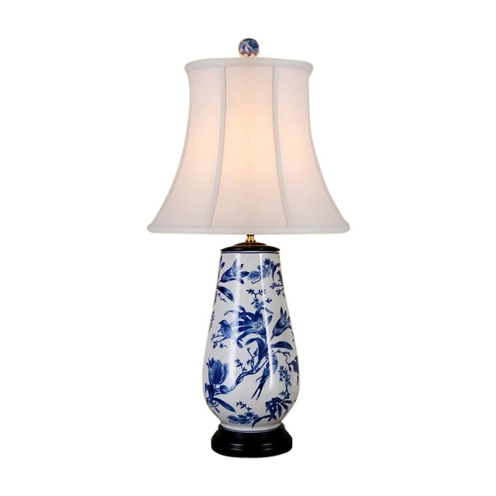 Chinese Blue and White Porcelain Vase Bird Motif Table Lamp 31"