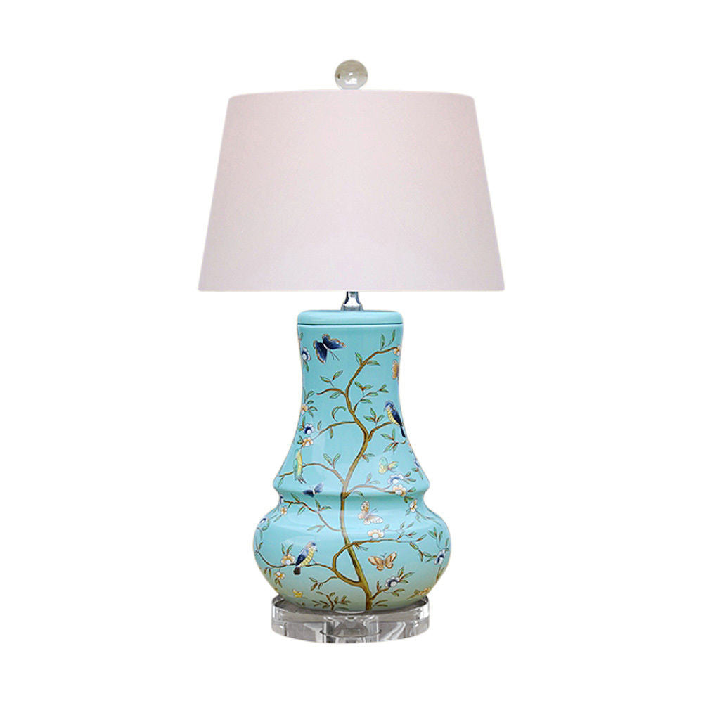 Cute Sea Foam Green Bird Motif Porcelain Vase Table Lamp 23"
