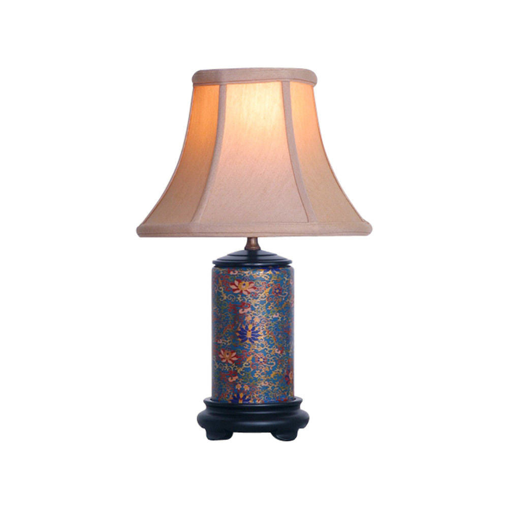 Dark Floral Motif Cylindrical Porcelain Vase Table Lamp 15"