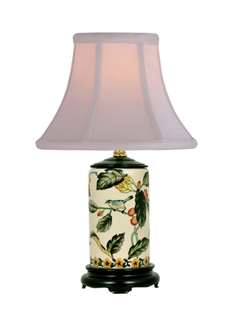 Floral Bird Motif Cylindrical Porcelain Vase Table Lamp 15"