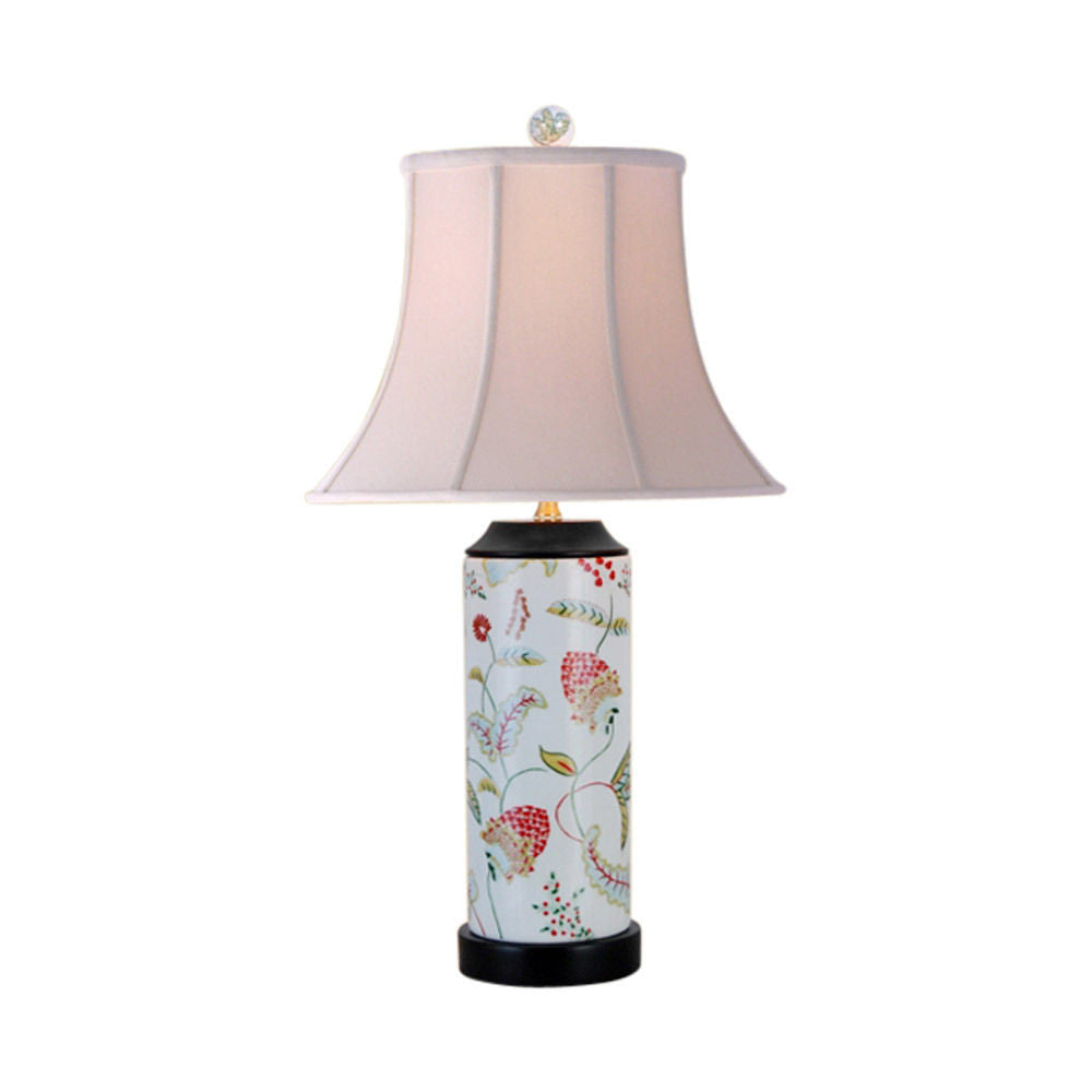 Fruit Floral Motif Cylindrical Porcelain Vase Table Lamp 24"