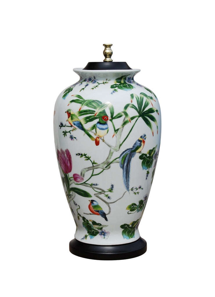 Large Chinese Bird Motif Porcelain Vase Table Lamp 30"