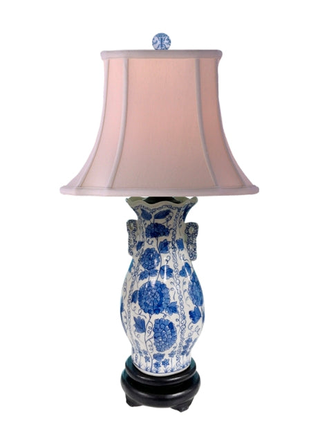 HAND PAINTED B/W PORCELAIN SCALLOPS VASE LAMP