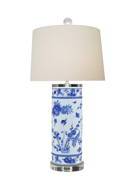 Blue and White Bird Motif Porcelain Vase Table Lamp 29"