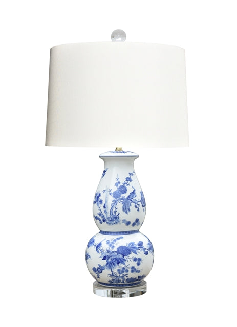 Blue and White Floral Gourd Vase Porcelain Table Lamp 32"