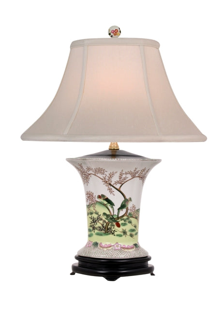 Parrot Motif Porcelain Scallop Vase Table Lamp 21"