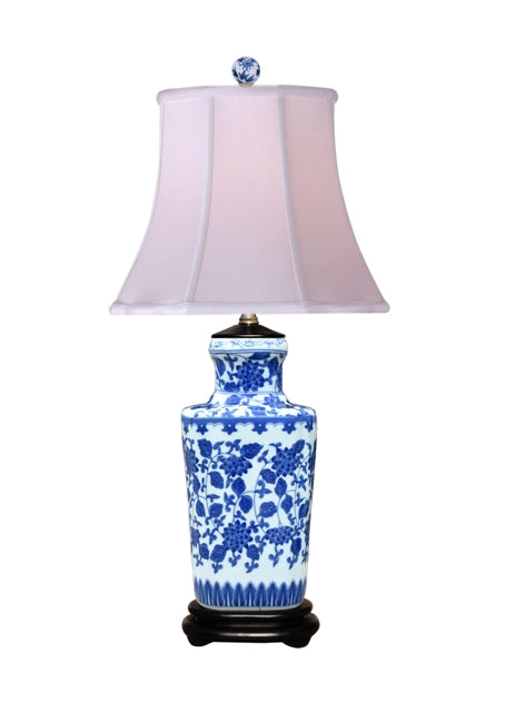Blue and White Lotus Vase Porcelain Table Lamp 27"