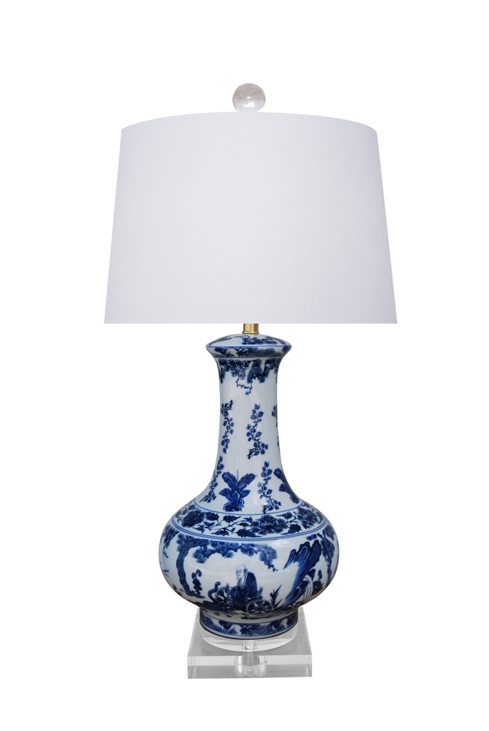 Blue and White Vintage Style Vase Porcelain Table Lamp 27"