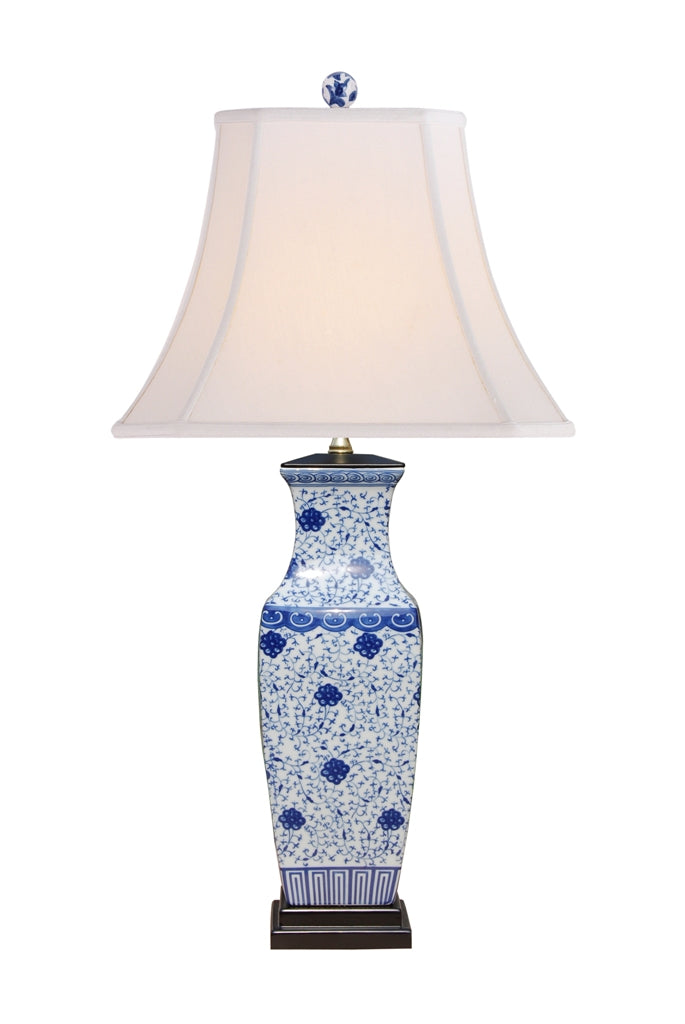 Blue and White Rectangular Porcelain Vase Table Lamp 33"