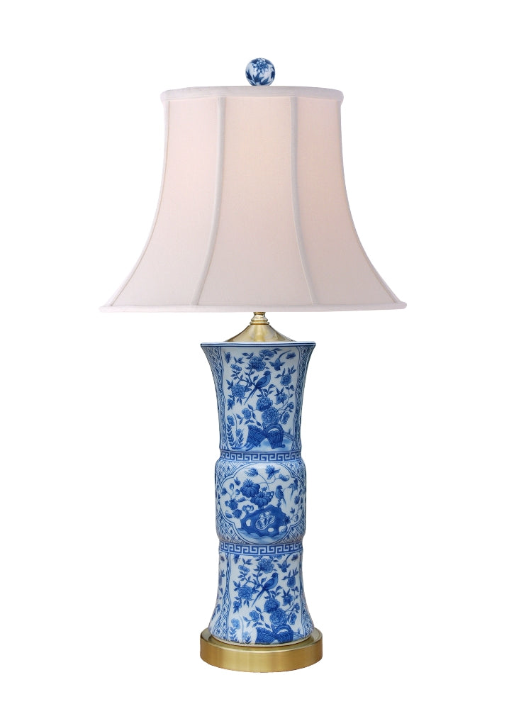 Blue and White Drum Vase Floral Porcelain Table Lamp 29"