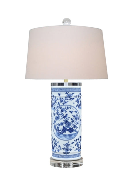 B/W PORCELAIN BRUSHPOT VASE LAMP
