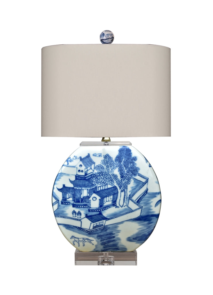Blue and White Blue Willow Porcelain Moon Vase Lamp 22"