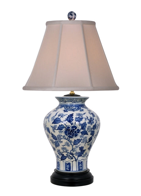 B/W PORCELAIN FLORAL VASE LAMP