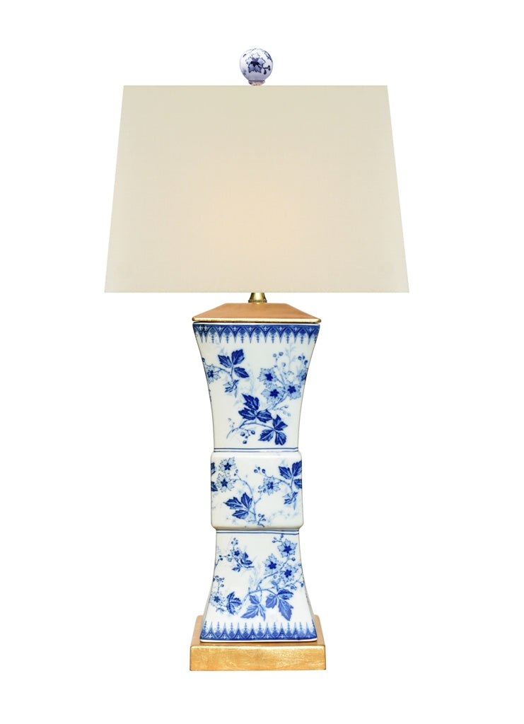 Blue and White Square Vase Floral Porcelain Lamp 27.5"