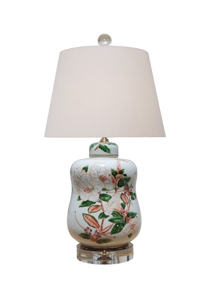 PORCELAIN WOOD FLOWER PUMP LAMP (CRYSTAL BASE)