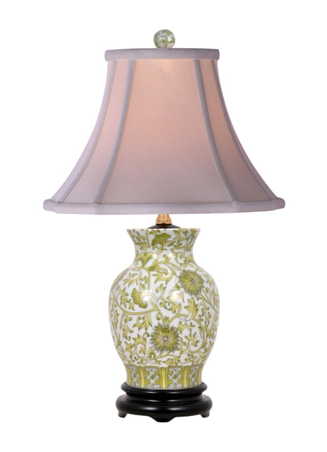 PORCELAIN LEMON GREEN FLORAL VASE LAMP