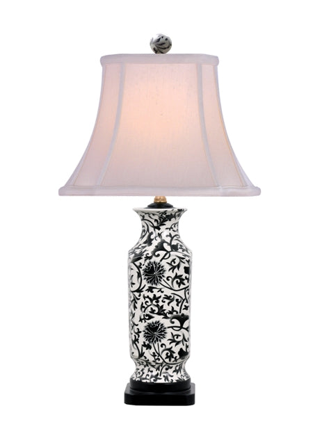 Black and White Twisted Lotus Porcelain Vase Table Lamp 24"