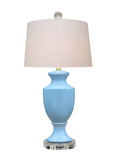PORCELAIN ICE BLUE BASKET LAMP