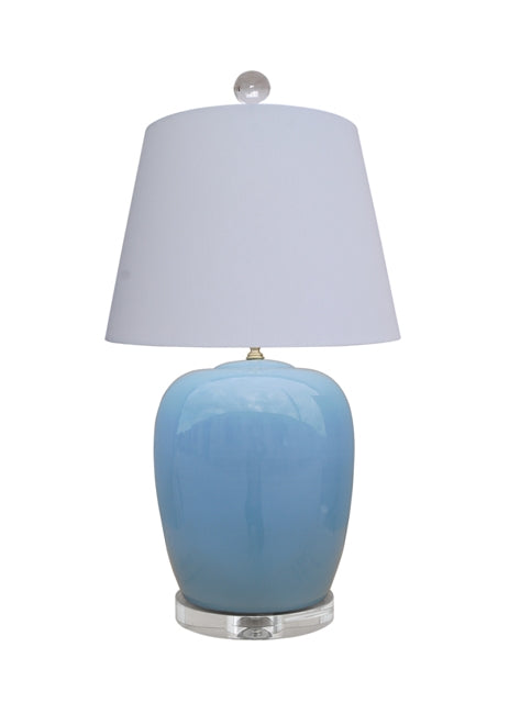 PORCELAIN ICE BLUE JAR LAMP CRYSTAL BASE