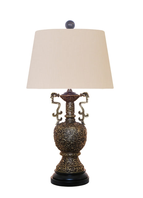 Oriental Brass Bronze Dragon Vase Table Lamp Shade Finial 24.5"