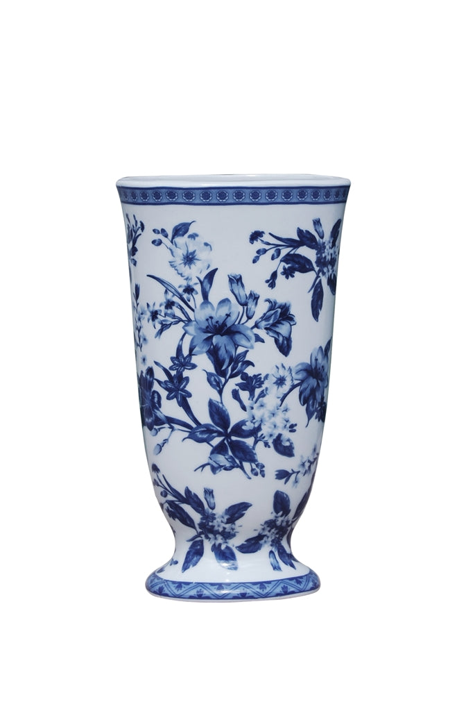 B/W AUTHETIC PORCELAIN HAND MADE FLORAL VASE 11"