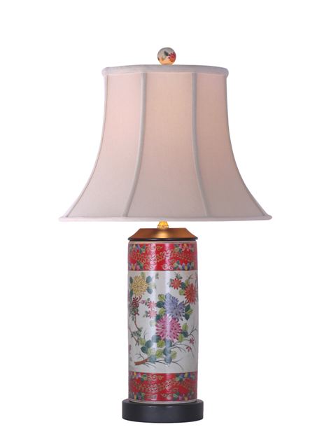 Red Floral Motif Cylindrical Porcelain Vase Table Lamp 24"