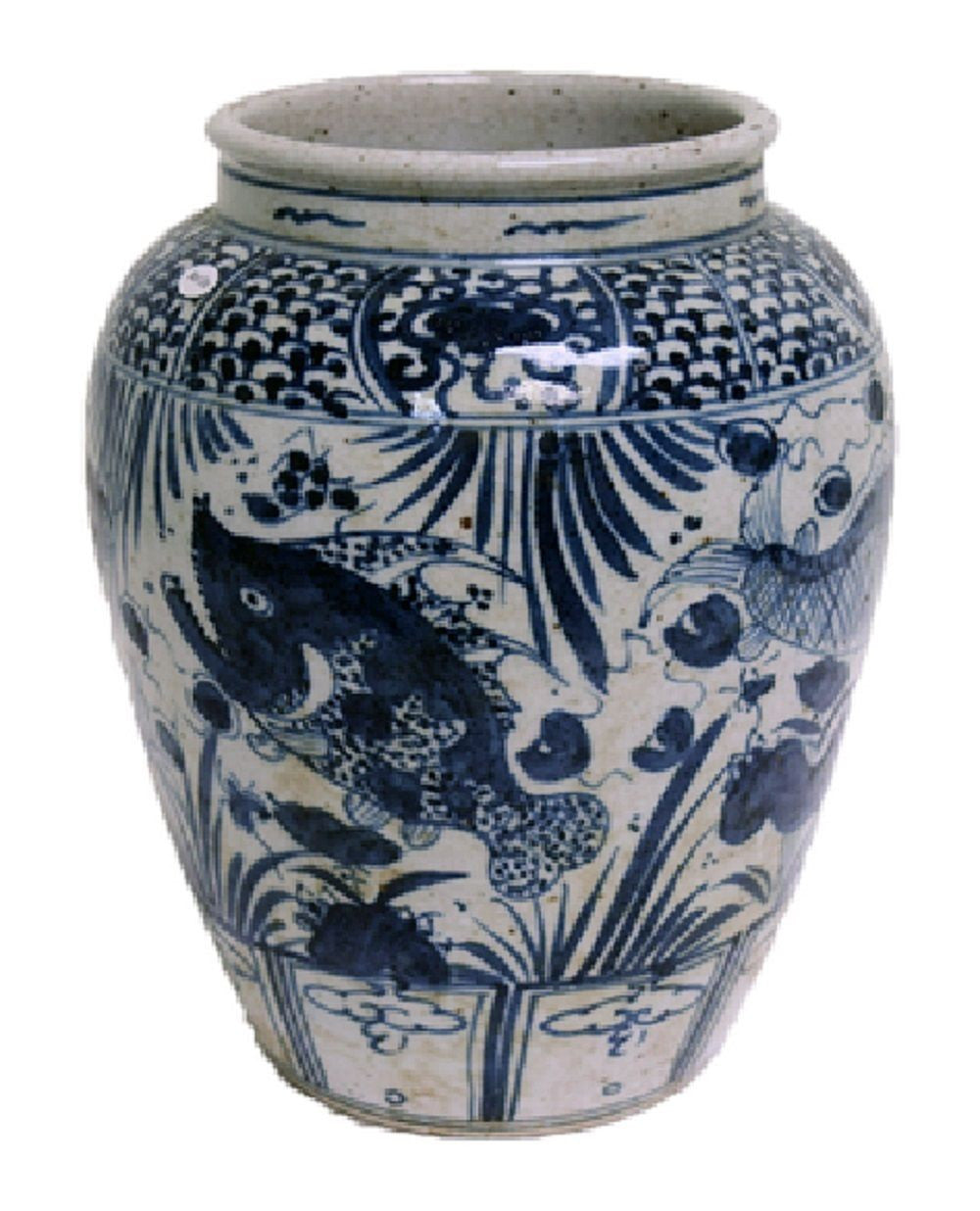 Vintage Style Reverse Blue and White Porcelain Fish Motif Flower Vase 12"