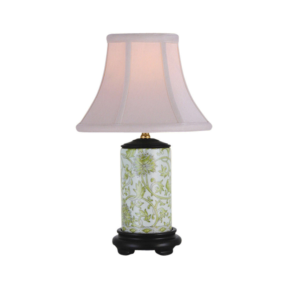 White and Green Tapestry Cylindrical Porcelain Vase Table Lamp 15"